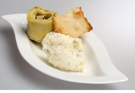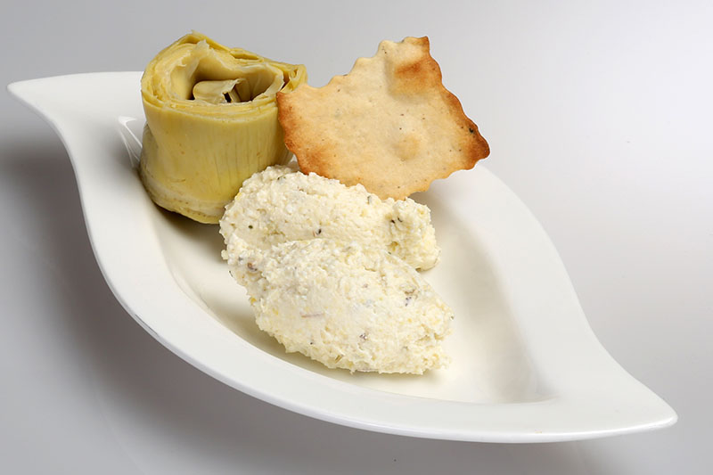 Brotaufstrich aus Schafskäse und Frischkäse mit Artischocken und Knoblauch