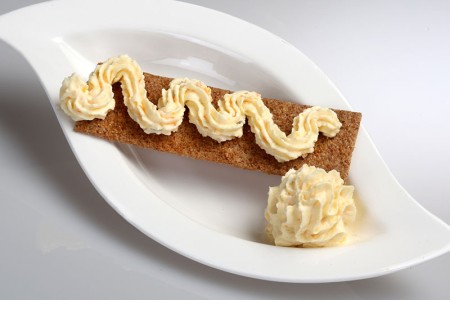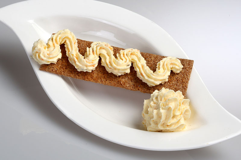 Frischkäsezubereitung mit Pfirsichen, gelbe Mini-Paprika und Rosmarin